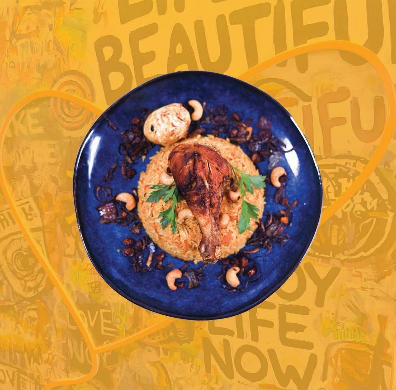 Orez Basmati, ghimbir, usturoi, ceapă, caju, pudră de masala, unt, roșii, pudră de piper negru, sare, frunze de coriandru, pui Original price was: 48,00 lei.44,00 leiCurrent price is: 44,00 lei. -