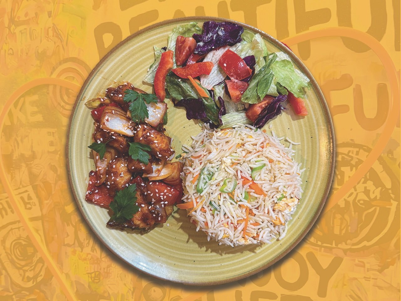 Egg Fried Rice, Veg Copsuey, Chilli Chicken, Chilli Paste and Tomato Sauce